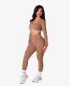 A blusinha sem bojo e a legging com dupla estampa evitam transparência, proporcionando segurança e confiança. Além disso, a legging em V conta com um prático bolso para acessórios, tornando-a ainda mais funcional.