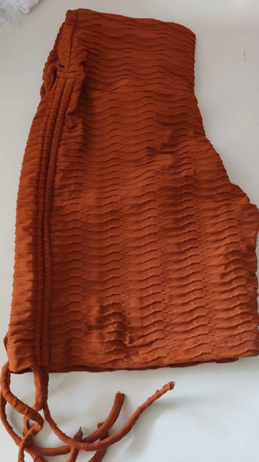 Tecido de alta elasticidade: O material, composto por 90% poliamida e 10% elastano, oferece flexibilidade e conforto, além de empinar o bumbum.